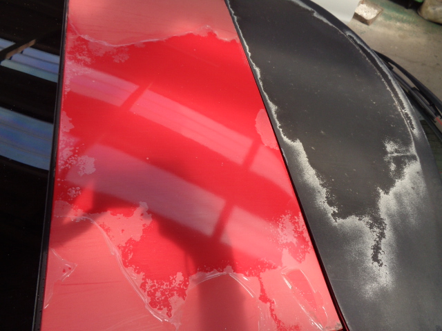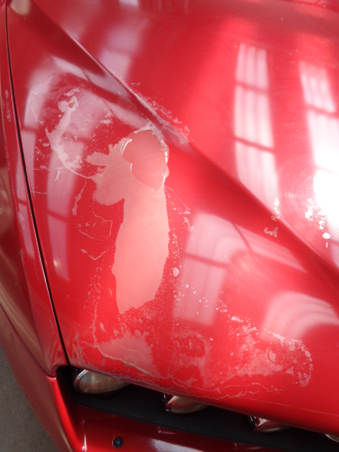 ボディ全体が水疱瘡のような塗装劣化と、モール類は地肌が出てしまう状況でございました。